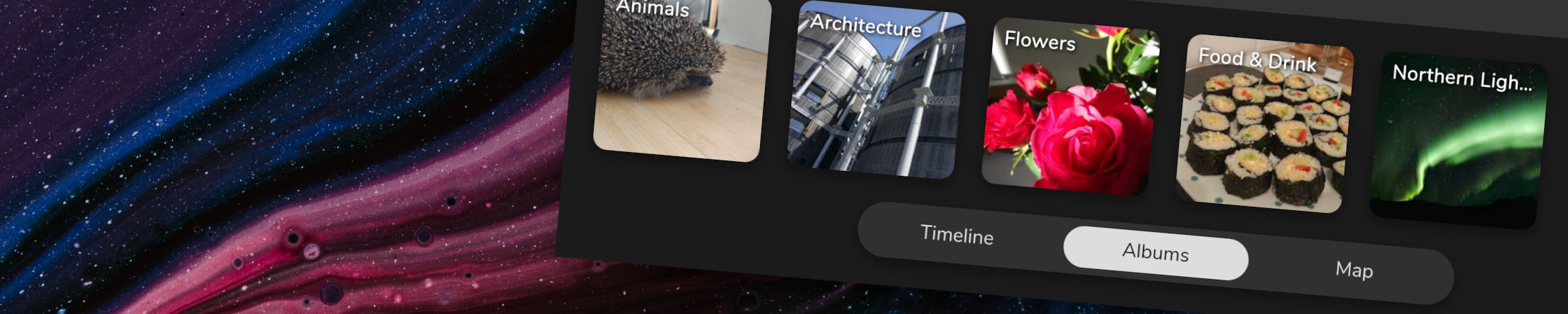 The big difference that albums have is that they are displayed a lot more prominently in a whole new tab with cover thumbnails. This is a new, more visual way of discovering your photos and we plan to extend it in future and may display automatic or serendipitous content here too – e.g. “This time 5 years ago” or “People you haven’t seen in a while”. Let us know what you think of this.